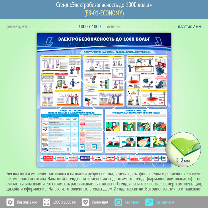 Стенд «Электробезопасность до 1000 вольт» (EB-01-ECONOMY) в Альметьевске купить