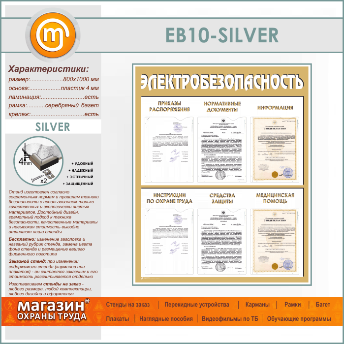 Стенд «Электробезопасность» с 6 карманами (EB-10-SILVER) в Альметьевске купить