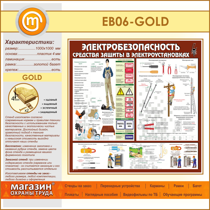 Стенд «Электробезопасность. Средства защиты в электроустановках» (EB-06-GOLD) в Альметьевске купить