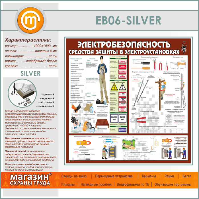 Стенд «Электробезопасность. Средства защиты в электроустановках» (EB-06-SILVER) в Альметьевске купить