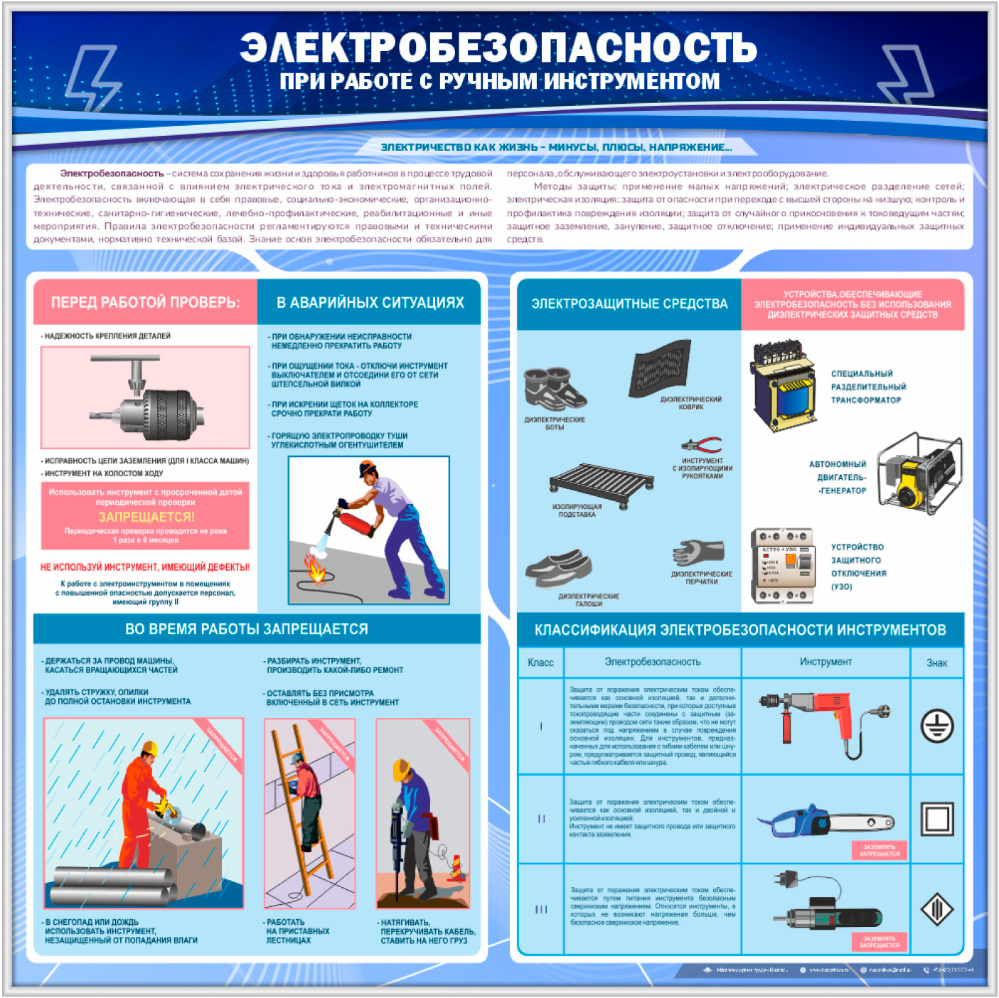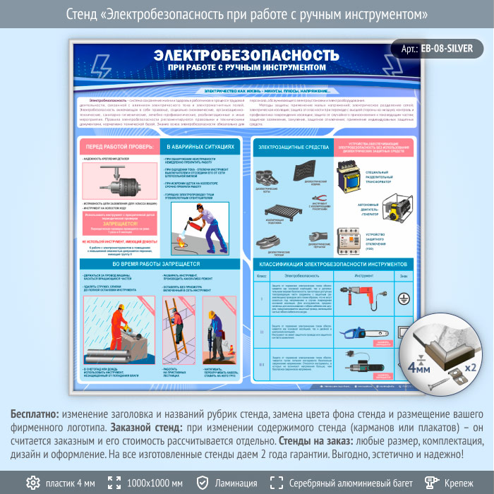 Стенд «Электробезопасность при работе с ручным инструментом» (EB-08-SILVER) в Альметьевске купить