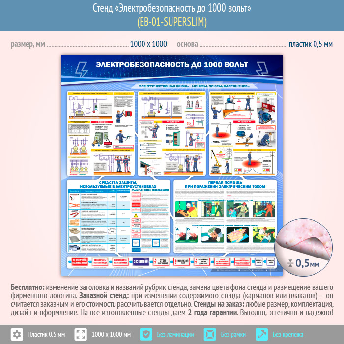 Стенд «Электробезопасность до 1000 вольт» (EB-01-SUPERSLIM) в Альметьевске купить