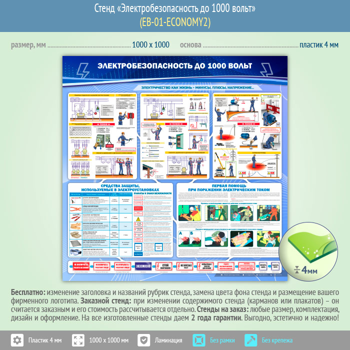 Стенд «Электробезопасность до 1000 вольт» (EB-01-ECONOMY2) в Альметьевске купить
