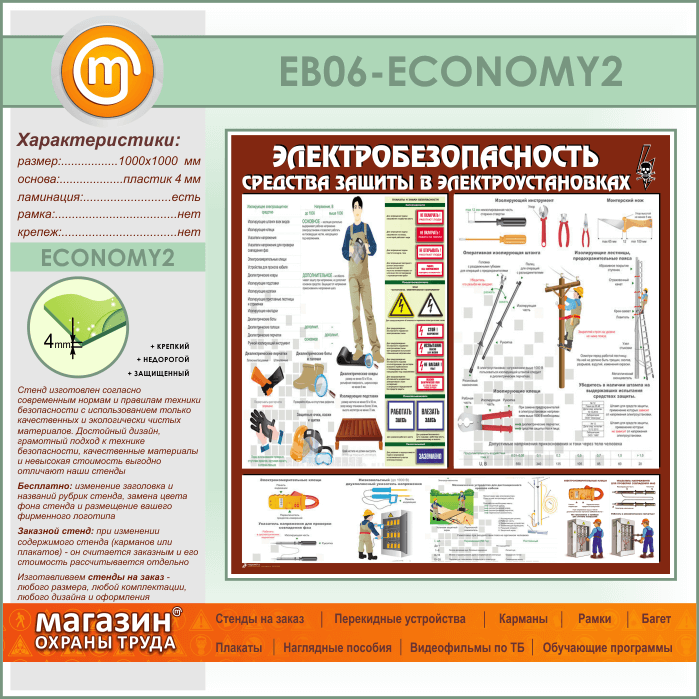 Стенд «Электробезопасность. Средства защиты в электроустановках» (EB-06-ECONOMY2) в Альметьевске купить