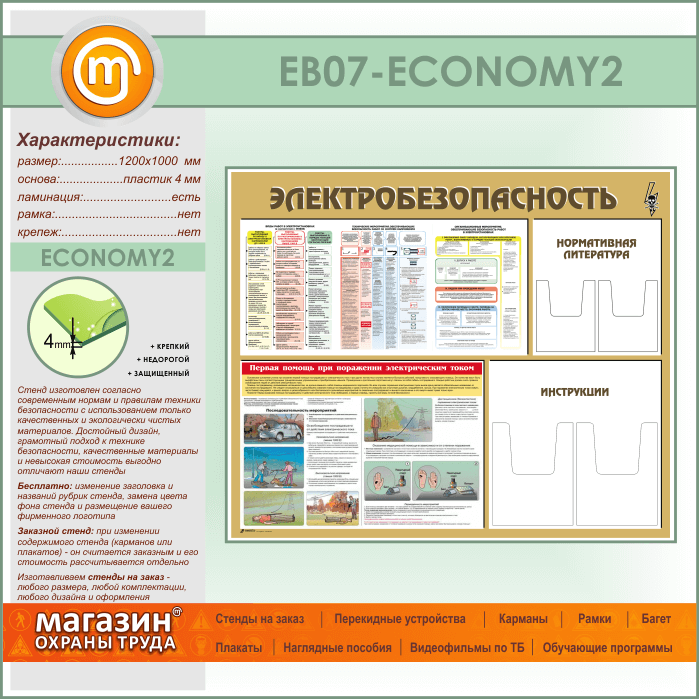 Стенд «Электробезопасность» с 4 объемными карманами (EB-07-ECONOMY2) в Альметьевске купить