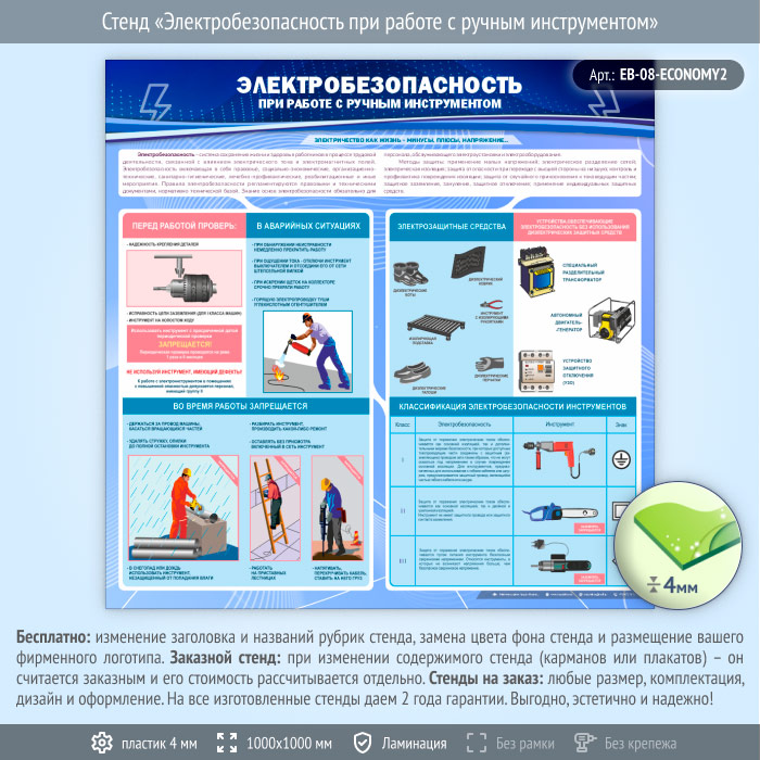 Стенд «Электробезопасность при работе с ручным инструментом» (EB-08-ECONOMY2) в Альметьевске купить