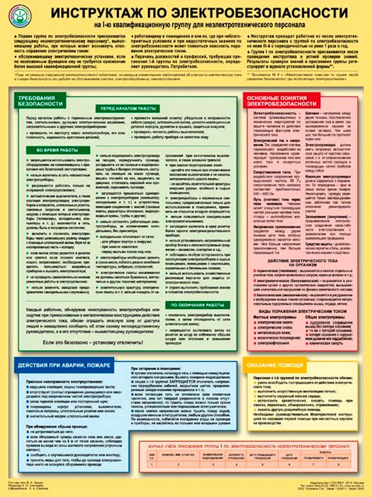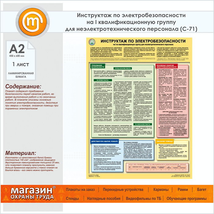 Плакат «Инструктаж по электробезопасности - на I квалификационную группу для неэлектротехнического персонала» (С-71, ламинированная бумага, А2, 1 лист) в Альметьевске купить