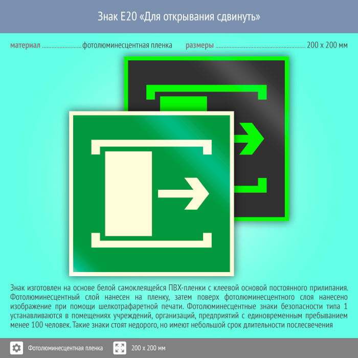 Знак E20 «Для открывания сдвинуть» (фотолюминесцентная пленка, 200х200 мм) в Альметьевске купить