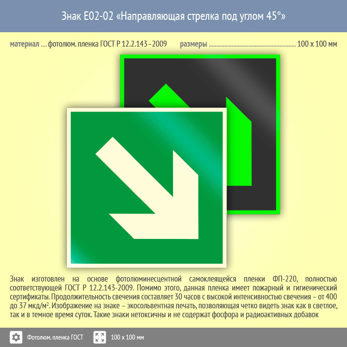 Знак E02-02 «Направляющая стрелка под углом 45°» (фотолюминесцентная пленка ГОСТ 34428-2018, 100х100 мм) в Альметьевске купить