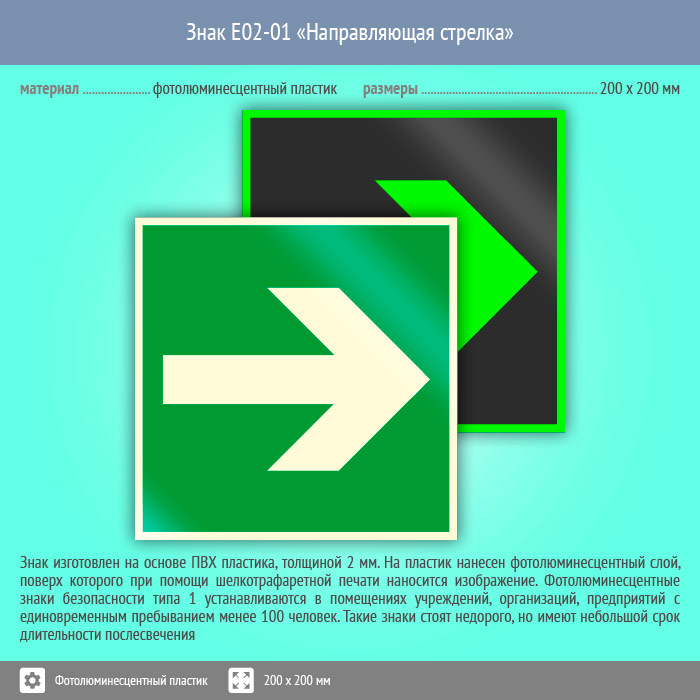 Знак E02-01 «Направляющая стрелка» (фотолюминесцентный пластик, 200х200 мм) в Альметьевске купить