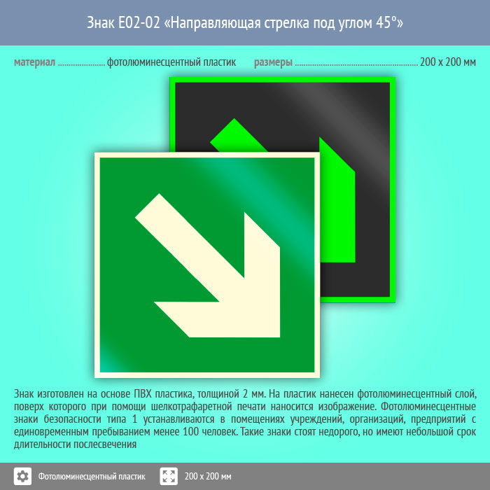 Знак E02-02 «Направляющая стрелка под углом 45°» (фотолюминесцентный пластик, 200х200 мм) в Альметьевске купить