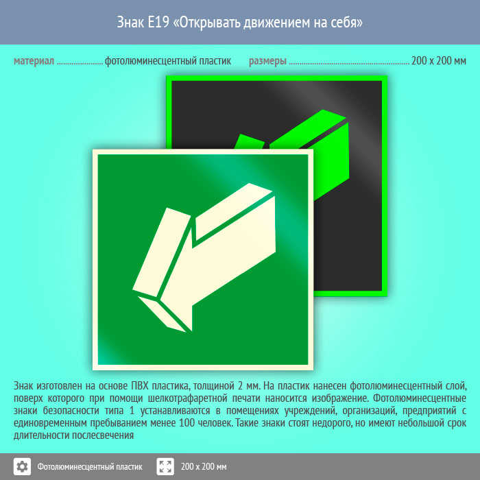 Знак E19 «Открывать движением на себя» (фотолюминесцентный пластик, 200х200 мм) в Альметьевске купить