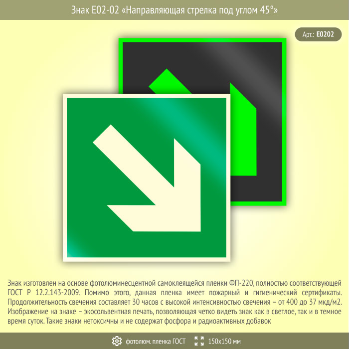Знак E02-02 «Направляющая стрелка под углом 45°» (фотолюминесцентная пленка ГОСТ 34428-2018, 150х150 мм) в Альметьевске купить