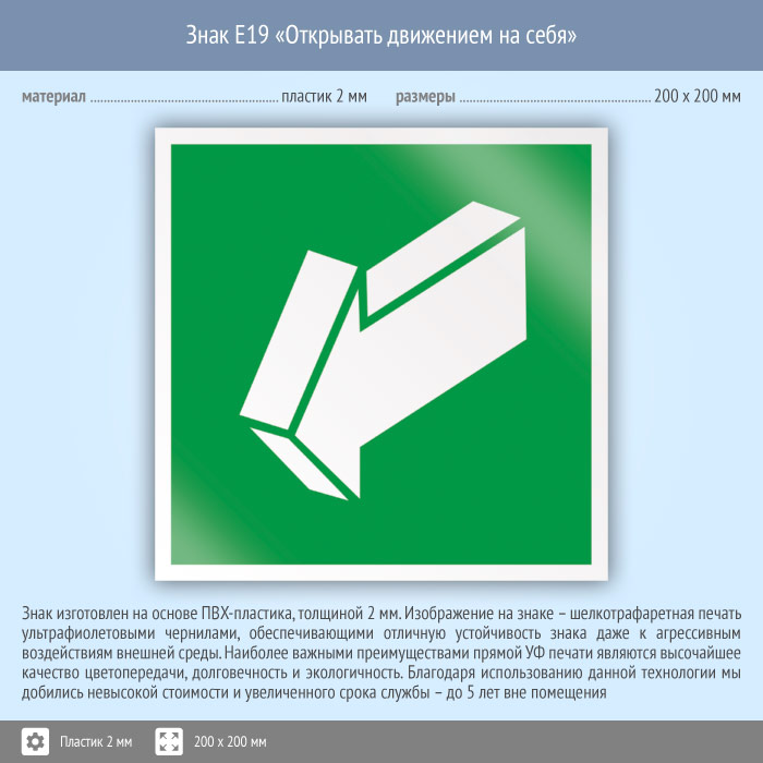 Знак E19 «Открывать движением на себя» (пластик, 200х200 мм) в Альметьевске купить