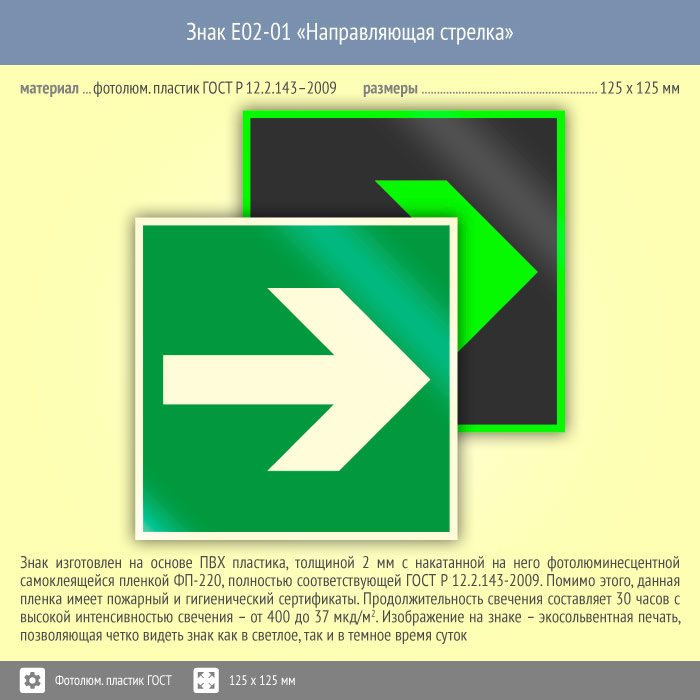 Знак E02-01 «Направляющая стрелка» (фотолюминесцентный пластик ГОСТ 34428-2018, 125х125 мм) в Альметьевске купить