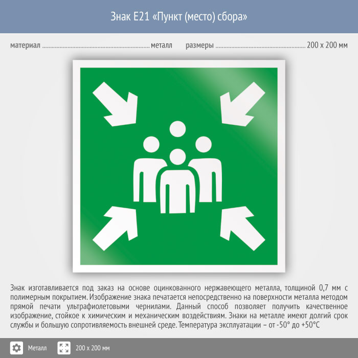 Знак E21 «Пункт (место) сбора» (металл, 200х200 мм) в Альметьевске купить