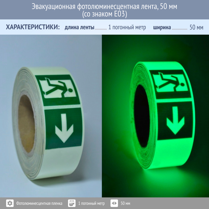 Эвакуационная фотолюминесцентная лента, 50 мм (со знаком E03) в Альметьевске купить