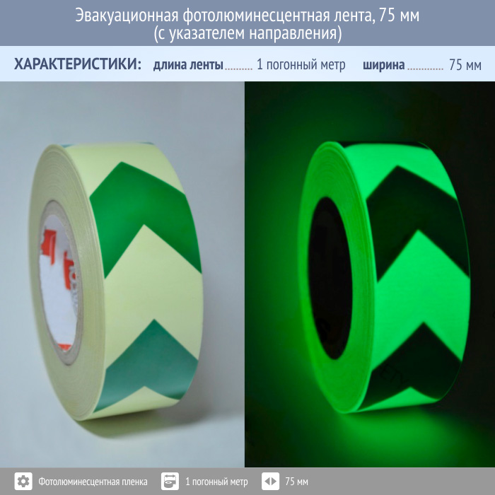 Эвакуационная фотолюминесцентная лента, 75 мм (с указателем направления) в Альметьевске купить