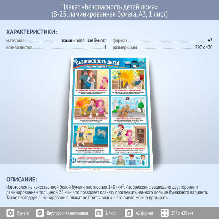 Плакат «Безопасность детей дома» (В-25, ламинированная бумага, А3, 1 лист) в Альметьевске купить