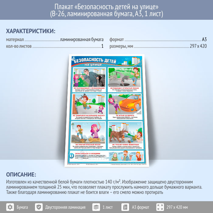 Плакат «Безопасность детей на улице» (В-26, ламинированная бумага, А3, 1 лист) в Альметьевске купить