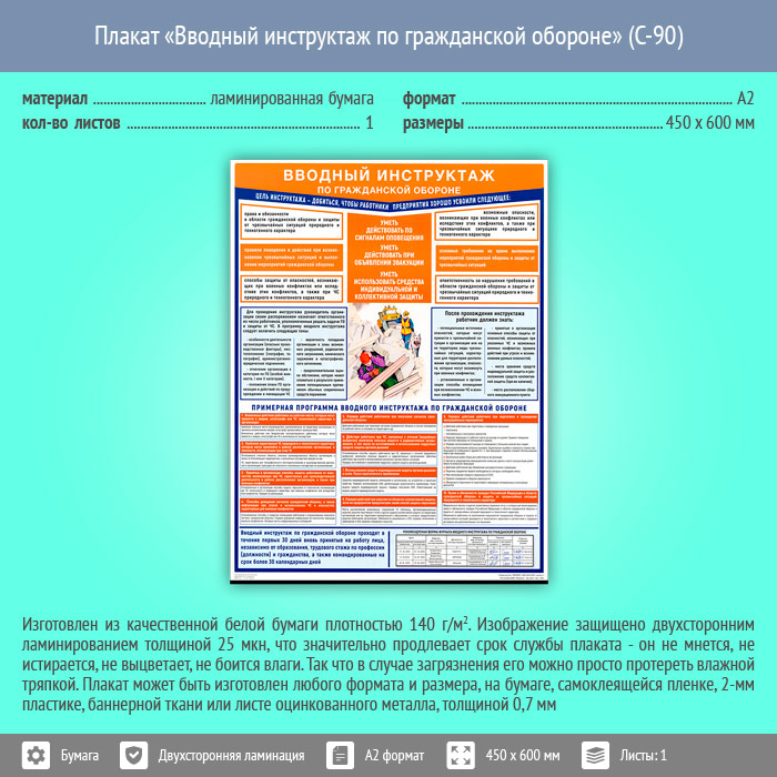 Плакат «Вводный инструктаж по гражданской обороне» (С-90, ламинированная бумага, А2, 1 лист) в Альметьевске купить