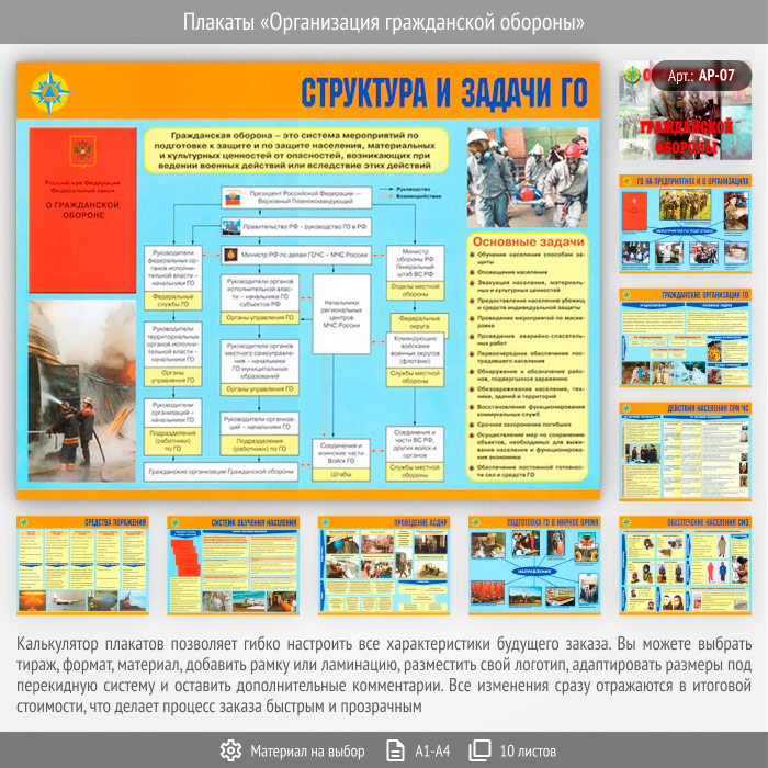 Плакаты «Организация гражданской обороны» (АР-07, 10 листов) в Альметьевске купить