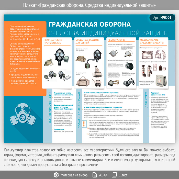 Плакат «Гражданская оборона. Средства индивидуальной защиты» (МЧС-01, 1 лист) в Альметьевске купить