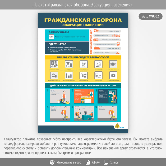 Плакат «Гражданская оборона. Эвакуация населения» (МЧС-02, 1 лист) в Альметьевске купить