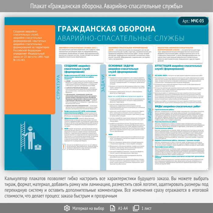 Плакат «Гражданская оборона. Аварийно-спасательные службы» (МЧС-03, 1 лист) в Альметьевске купить