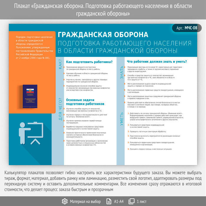 Плакат «Гражданская оборона. Подготовка работающего населения в области гражданской обороны» (МЧС-08, 1 лист) в Альметьевске купить