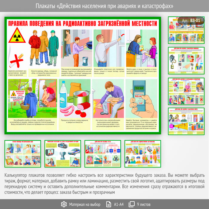 Плакаты «Действия населения при авариях и катастрофах» (ВЗ-01, 9 листов) в Альметьевске купить