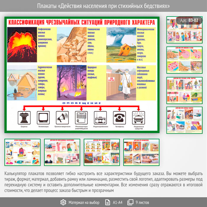 Плакаты «Действия населения при стихийных бедствиях» (ВЗ-02, 9 листов) в Альметьевске купить