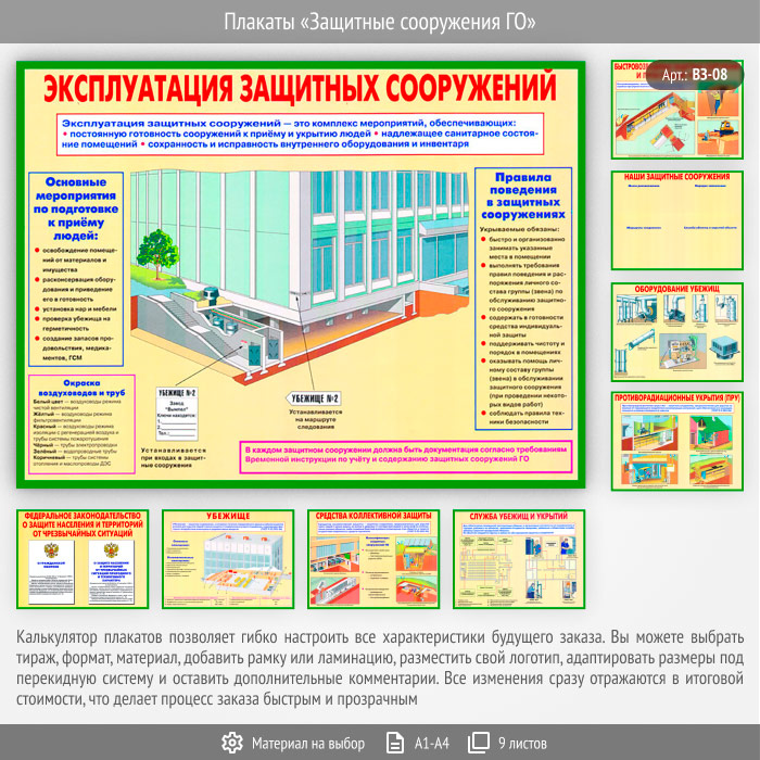 Плакаты «Защитные сооружения ГО» (ВЗ-08, 9 листов) в Альметьевске купить
