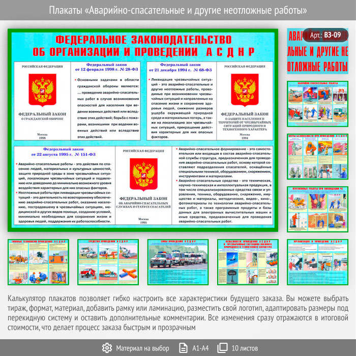 Плакаты «Аварийно-спасательные и другие неотложные работы» (ВЗ-09, 9 листов) в Альметьевске купить