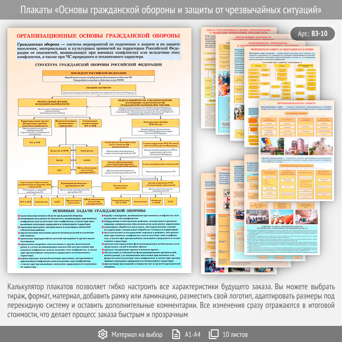 Плакаты «Основы гражданской обороны и защиты от чрезвычайных ситуаций» (ВЗ-10, 10 листов) в Альметьевске купить