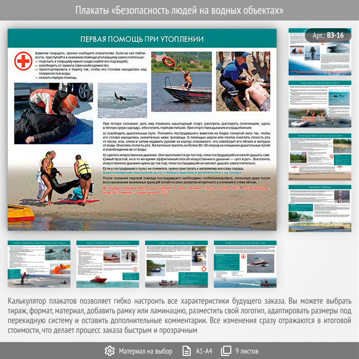 Плакаты «Безопасность людей на водных объектах» (ВЗ-16, 9 листов) в Альметьевске купить