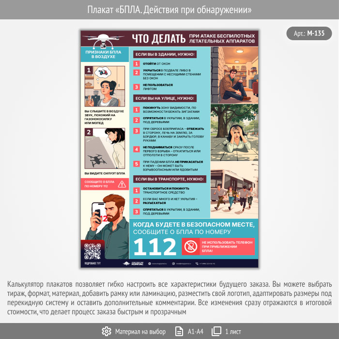 Плакат «БПЛА. Действия при обнаружении» с QR (М-135, 1 лист) в Альметьевске купить