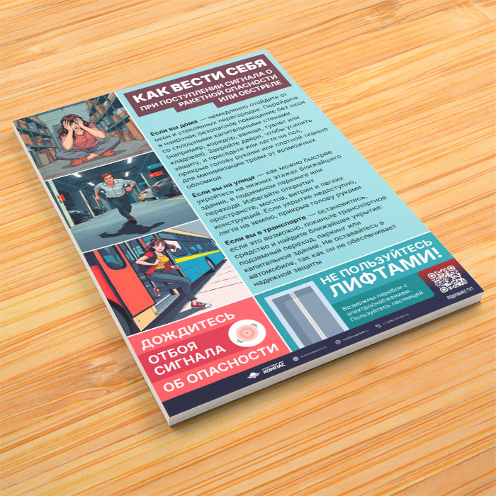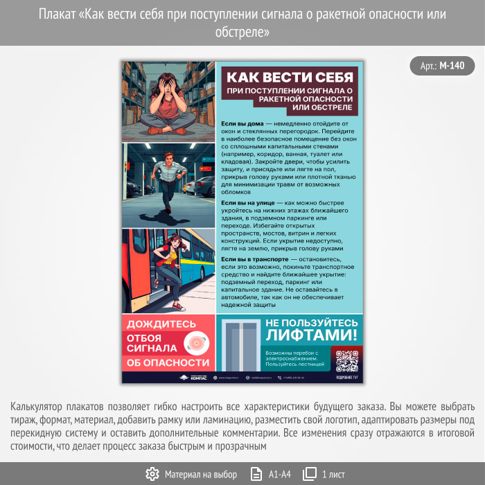 Плакат «Как вести себя при поступлении сигнала о ракетной опасности или обстреле» с QR (М-140, 1 лист) в Альметьевске купить