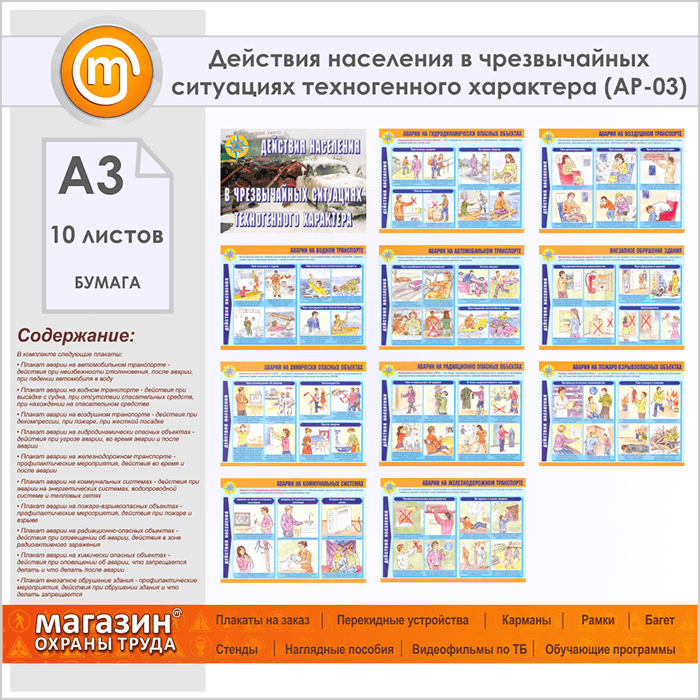 Плакаты «Действия населения в чрезвычайных ситуациях техногенного характера» (АР-03, бумага, А3, 10 листов) в Альметьевске купить