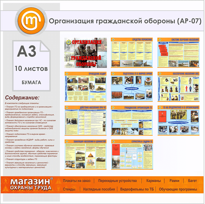 Плакаты «Организация гражданской обороны» (АР-07, бумага, А3, 10 листов) в Альметьевске купить