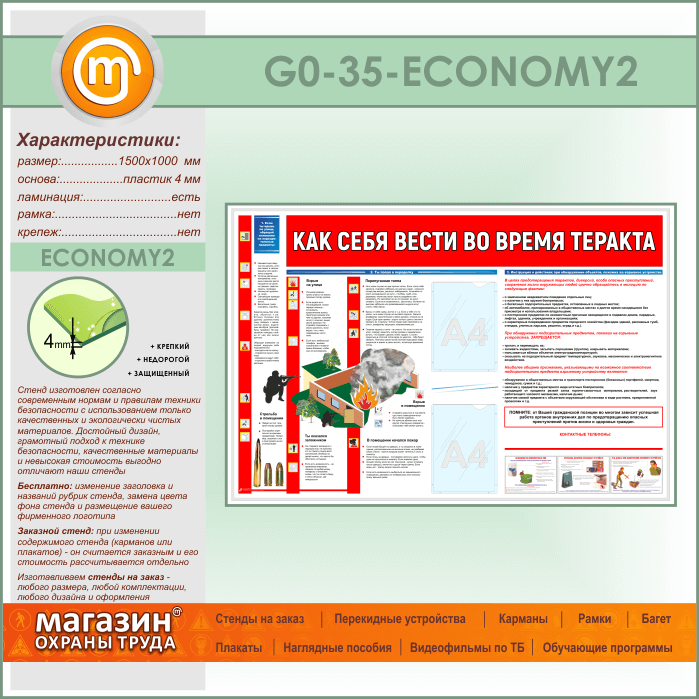 Стенд «Как себя вести во время теракта» c 2 карманами (GO-35-ECONOMY2) в Альметьевске купить