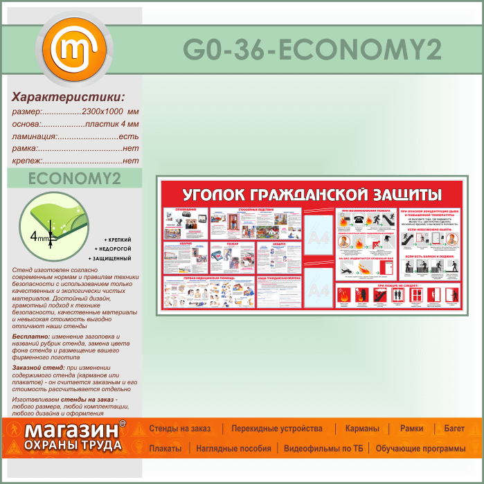 Стенд «Уголок гражданской защиты» c 2 карманами (GO-36-ECONOMY2) в Альметьевске купить