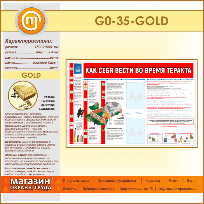 Стенд «Как себя вести во время теракта» c 2 карманами (GO-35-GOLD) в Альметьевске купить