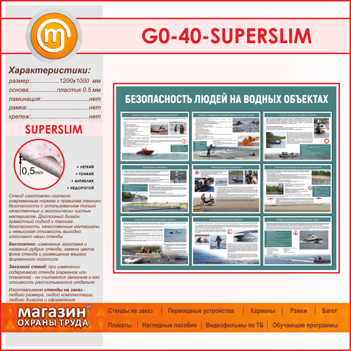 Стенд «Безопасность людей на водных объектах» (GO-40-SUPERSLIM) в Альметьевске купить