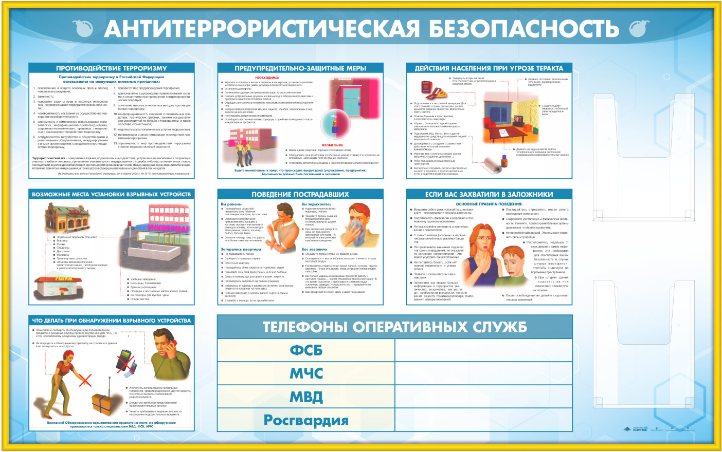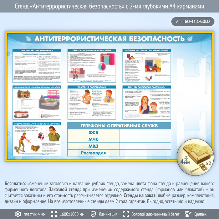 Стенд «Антитеррористическая безопасность» с 2-мя глубокими А4 карманами (GO-43.1-GOLD) в Альметьевске купить