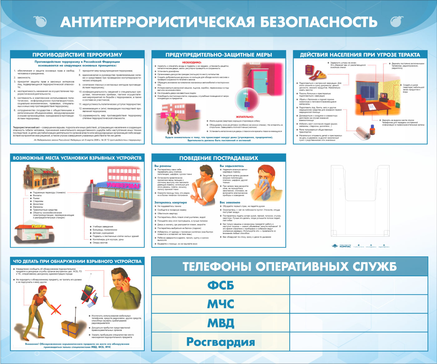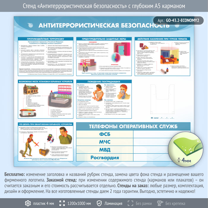 Стенд «Антитеррористическая безопасность» с глубоким А5 карманом (GO-43.2-ECONOMY2) в Альметьевске купить