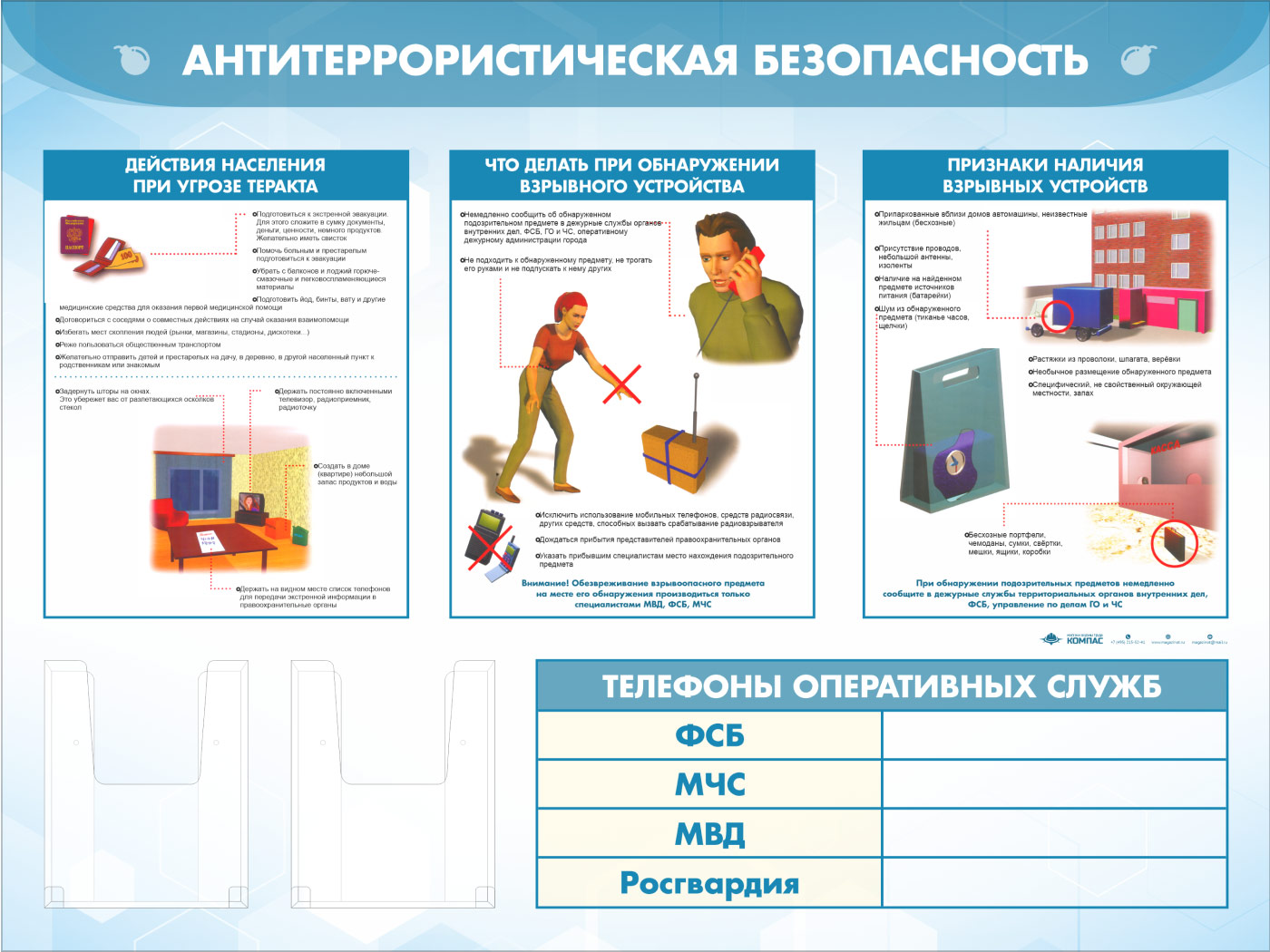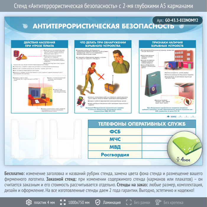 Стенд «Антитеррористическая безопасность» с 2-мя глубокими А5 карманами (GO-43.3-ECONOMY2) в Альметьевске купить