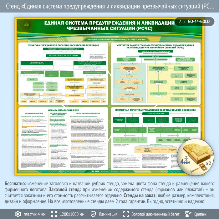 Стенд «Единая система предупреждения и ликвидации чрезвычайных ситуаций (РСЧС)» (GO-44-GOLD) в Альметьевске купить