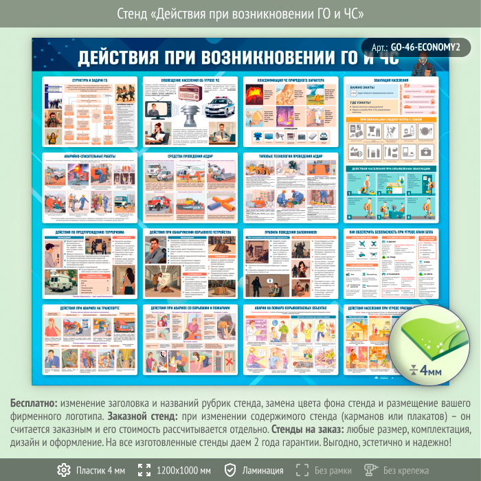 Стенд «Действия при возникновении ГО и ЧС» (GO-46-ECONOMY2) в Альметьевске купить