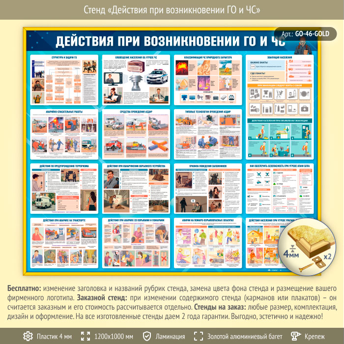 Стенд «Действия при возникновении ГО и ЧС» (GO-46-GOLD) в Альметьевске купить